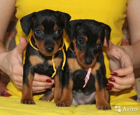 Мальчик черно-подпалый и девочка. Породы ЦВЕРГПИНЧЕР: